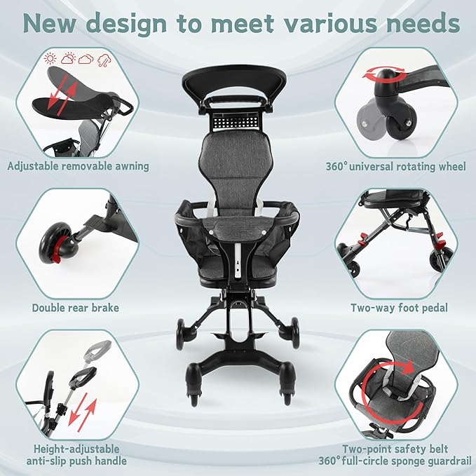 The convenience stroller comes with Universal front wheels, built in bearings, both front and rear wheels contain built in bearings, 360° universal turning.
